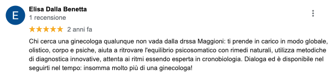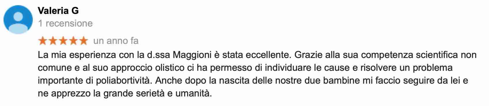 Ho conosciuto la dottoressa Maggioni su suggerimento di un’amica che aveva avuto esperienze “di successo” in situazioni di procreazione difficile. Io all’epoca avevo 38 anni ed ero nel “tunnel” della poli-abortività: 5 gravidanze con interruzione spontanea tra la 6° e la 9° settimana, senza spiegazioni evidenti malgrado numerosi esami e interventi diagnostici anche invasivi.Il fatto che il suo metodo di indagine fosse non invasivo e le terapie consigliate fossero articolate e mirate, ma non “aggressive” mi ha ispirato fiducia e così…nel settembre 2011 è nata Anita, la nostra bimba tanto desiderata e piuttosto “insperata”, dopo una gravidanza attenta ma senza alcun problema e un “bellissimo” parto naturale. Cristina prima e dopo è stato un importantissimo riferimento, e le siamo affezionati oltre che grati!